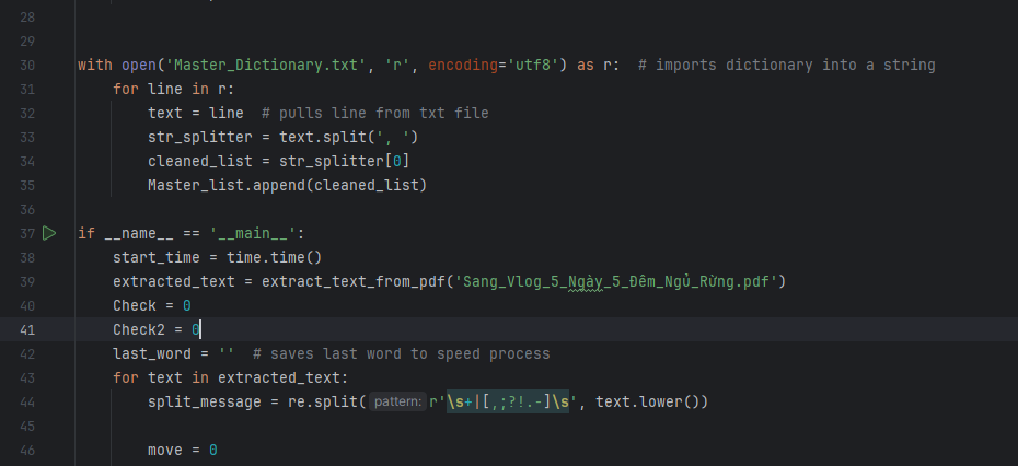 In an effort to save you some time (and avoid admitting that I didn’t comment the code too well) I’ll summarize what I set out to do. I wanted to take a page of text in Vietnamese, split each word into a separate string (line of text) then check to see if the string was already in the list of words to learn. If it was, we could add a number in the column next to it, if not, we would add it to the list. After a quick sort, we would end up with a list of word by how often they appeared in the text. Then any word that appeared more than three times could be converted into flashcards and I would be able to read the text and just focus on the grammar.